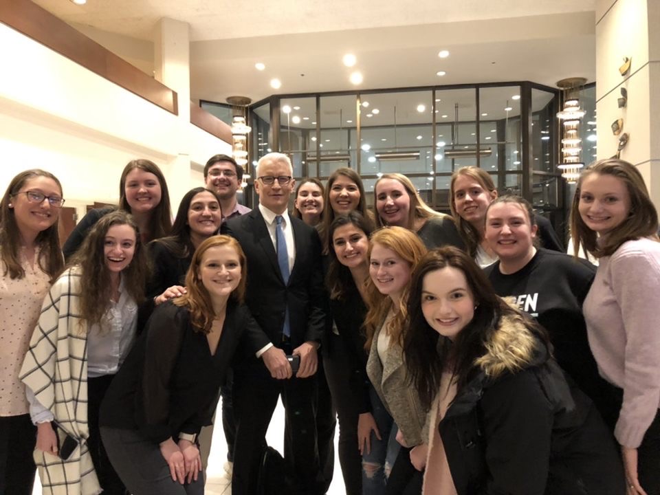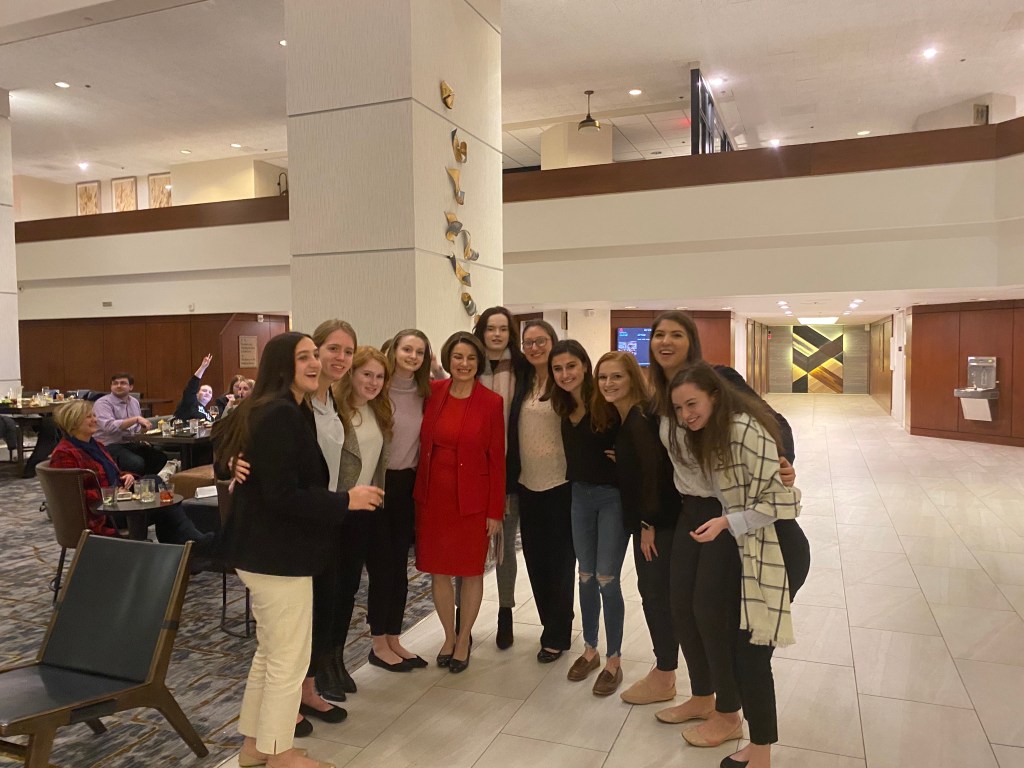 Overall, last night was the fastest two hours of my life. The time was up and I felt like the candidates barely touched the surface of numerous issues, something that Warren noted in her closing remarks. After the final applause of the night, the candidates came to the edge of the stage and off the stage where they talked with those of us who were there in the audience and took pictures with us. I was not expecting this to happen at all and figured they would just rush off the stage. Everyone except for Bernie stayed around. The night just kept getting better and better. I was able to meet Joe Biden who personally took a selfie with all of us from Elon, and his wife Dr. Jill Biden who was incredibly kind. At one point when Dr. Biden introduced herself, Joe said “Hi, I’m Jill’s husband” which was really funny. I then worked my way over to Pete Buttigieg, the candidate that I have been working for during my time here in Iowa. I was able to talk with him one on one and told him that I have been working for him here in Des Moines. He was very grateful and asked me where exactly I was working. I told him the specific office I was working in and how incredible his staff has been. I was able to talk one on one with him for a couple of minutes, something I never thought I would be able to do. A group of us continued down the line to talk with Pete’s husband Chasten who was also incredibly kind and talked with us about musical theater, a love of his. Although I did not get to take a picture with Chasten, it was incredible to be able to meet him. After leaving Chasten we got back on the bus and returned to our hotel where we once more ate a late dinner in the lobby, waiting for people to return from the debate. All of CNN has been staying in our hotel so we were able to meet Anderson Cooper when he returned, and the president of CNN. Amy Klobuchar also walked into the hotel and we were able to talk with her as well.