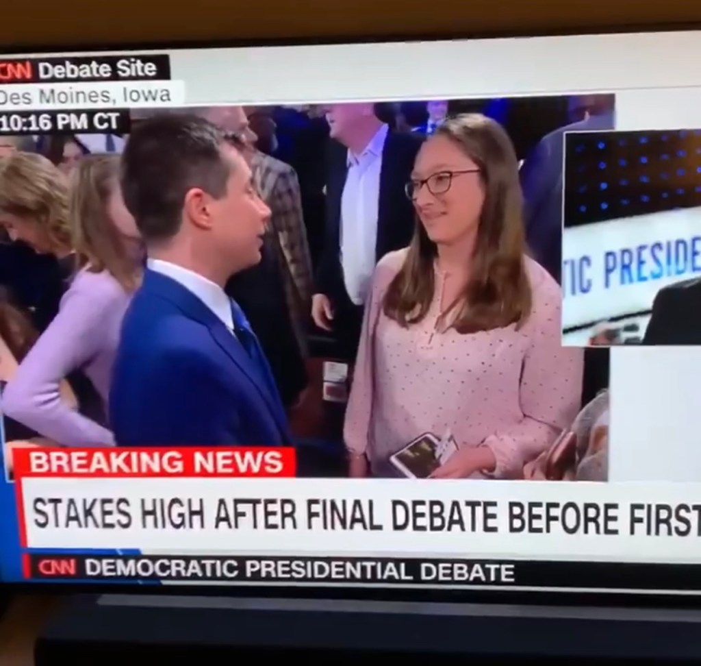 This night was unforgettable to say the least and it just kept going. Sitting in the auditorium was unbelievable and then watching the candidates on stage was followed by getting to meet the candidates. Once we returned to our hotel, people just kept walking into our lobby. My phone was blowing up with people texting me from middle school and high school that they saw me on TV. My family was sending me videos of us on CNN talking to Biden and taking a selfie with Biden. By far my favorite video that was sent to me was my one on one conversation with Pete Buttigieg which was live on CNN! I just could not believe it. The opportunities that this trip has given me have been endless and like no other. I am incredibly grateful to my parents for allowing me to go on this trip, to Elon University for providing me with the opportunity to even participate in a class like this, and to my professors, Dr. Dalhouse and Dr. Landesberg for all of the unforgettable experiences they have provided us on this trip. For sure, this will be a night I remember for the rest of my life.