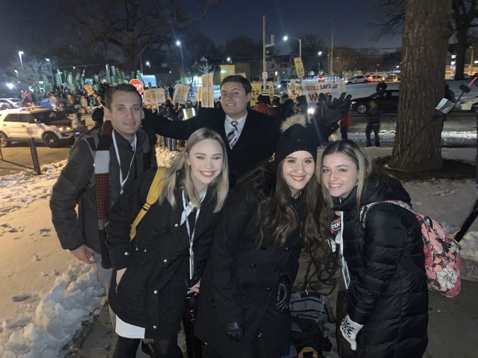 As we pulled into Drake University, it was clear there were multiple protests occurring outside the debate. There we had it, our first story. Covering a Poor People’s Campaign protest while keeping an eye out for the Amy Klobuchar supporters chanting across the street and a car with Trump supporters screaming as they made rounds around the campus was overwhelming but thrilling.